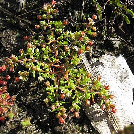 Crassula rupestris, also known as buttons on a string, bead vine, necklace vine, rosary vine, Baby's Necklace Vine, and Kebab Bush, is a shrubby succulent of the Crassulaceae family native to the Cape Provinces and Eastern Cape of South Africa. This plant is prized for its beauty, with leaves that turn red or yellow in the summer. It grows slowly but can exist in nature for over 60 years, reaching up to 91 cm (30 ft) with 0.6 cm (0.25 in) leaves and bunches of flowers in varying shades of pink. This low maintenance plant is perfect for those who forget to water, as it can handle long periods of drought as long as it's planted in a pot with a drainage hole and receives plenty of sunlight. It has gained the Royal Horticultural Society's Award of Garden Merit.